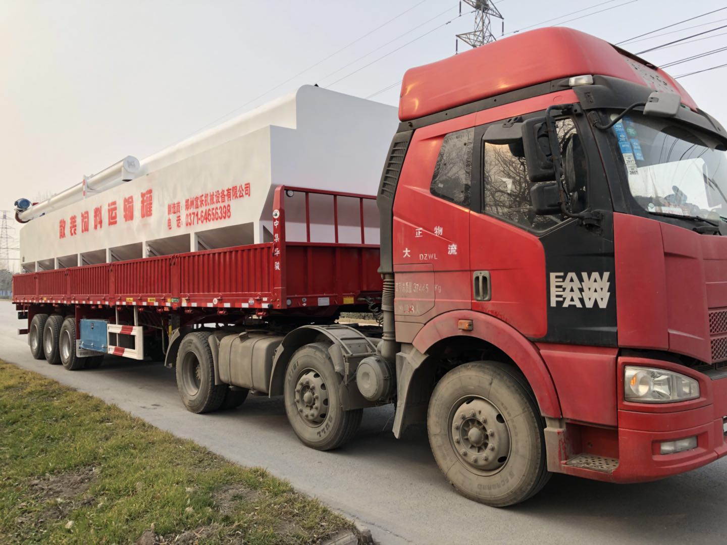 3、用富樂(lè)散裝飼料運(yùn)輸車(chē)來(lái)運(yùn)輸?shù)娘暳,比飼料工廠包裝好的飼料比,運(yùn)輸環(huán)節(jié)上既可以減少裝卸搬運(yùn),又可以降低成本。